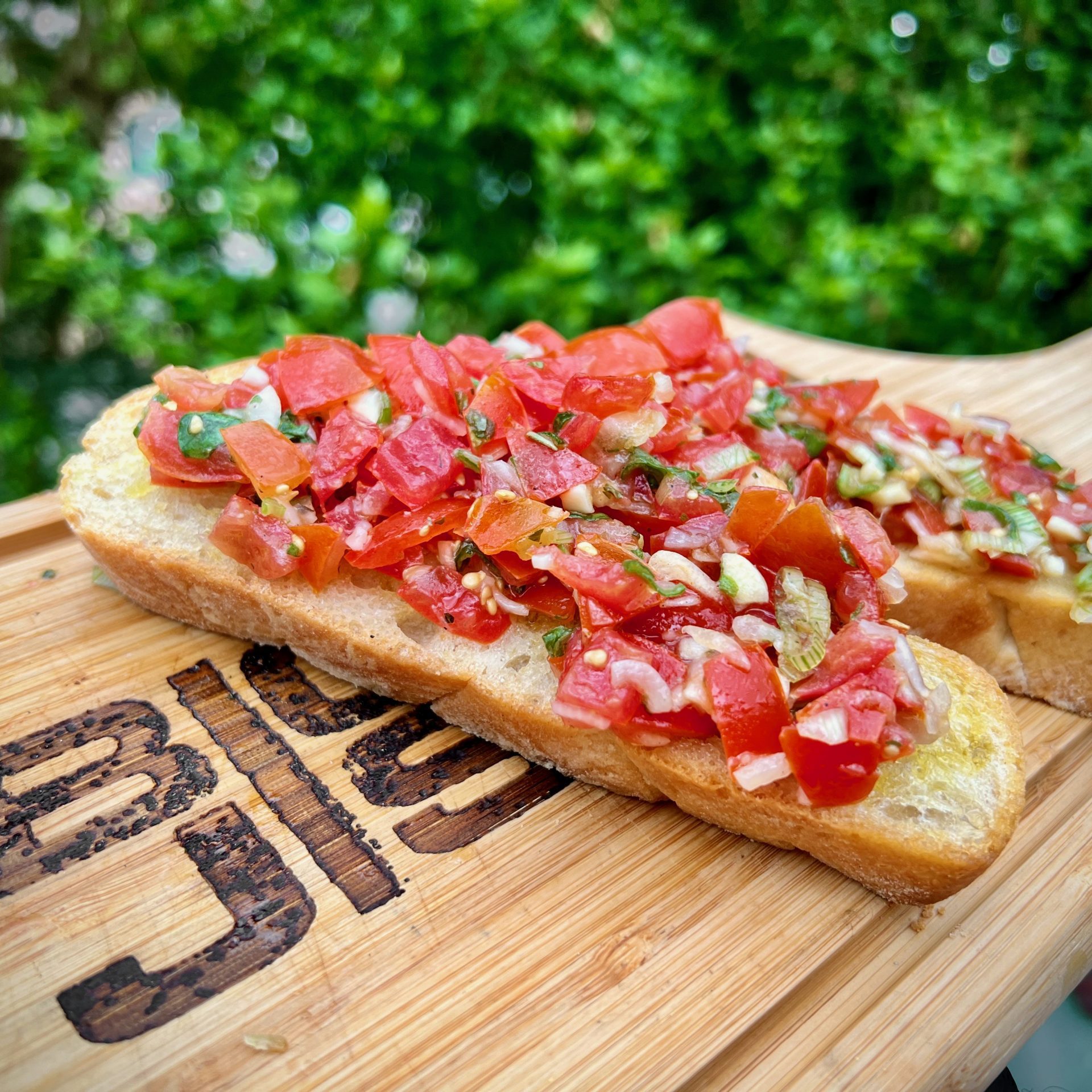 Bruschetta ist ein klassischer Bestandteil der italienischen Antipasti und stammt aus Mittel- und Süditalien. Das ursprüngliche „Arme-Leute-Essen“ besteht aus frisch geröstetem Ciabatta, das mit Ölivenöl getränkt und mit einer Tomaten-Basilikum-Masse belegt wird.
