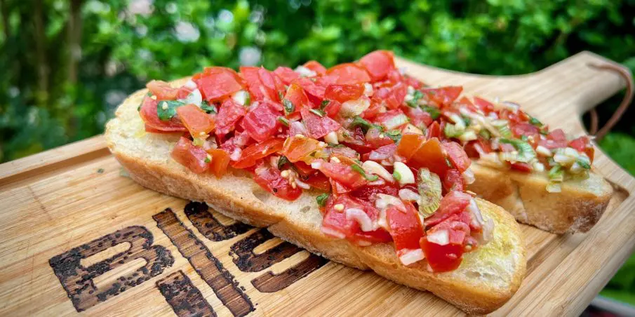 Bruschetta ist ein klassischer Bestandteil der italienischen Antipasti und stammt aus Mittel- und Süditalien. Das ursprüngliche „Arme-Leute-Essen“ besteht aus frisch geröstetem Ciabatta, das mit Ölivenöl getränkt und mit einer Tomaten-Basilikum-Masse belegt wird.