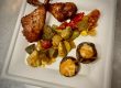 - Die Chorizo in 2-3 cm breite Stücke schneiden, die Spitzpaprika vierteln, entkernen und in 5 cm große Stücke schneiden. Die Zitrone halbieren und dickere Scheiben runterschneiden.
