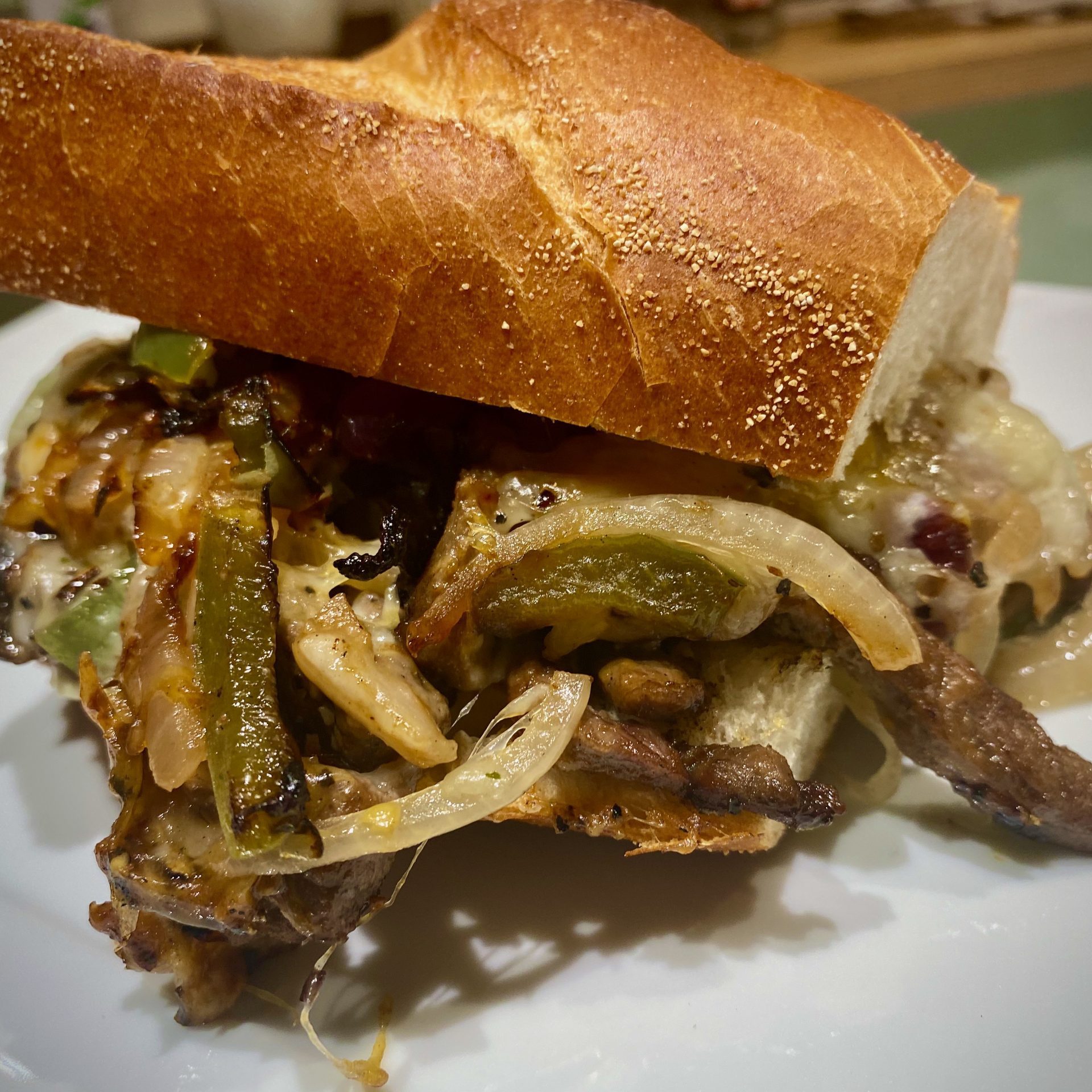Das Philly Cheesesteak ist ein Sandwich-Klassiker aus Philadelphia. Es wird auch oft nur als Cheesesteak oder als Philadelphia Cheese Steak bezeichnet. Es besteht aus sehr dünn geschnittenem Rumpsteak oder Ribeye und wurde angeblich in den 1930er Jahren von den Brüdern Pat und Harry Olivieri im Pat’s King of Steaks erfunden. Wir haben uns für die Variante mit Zwiebeln, grünen Paprika und Champignons entschieden.