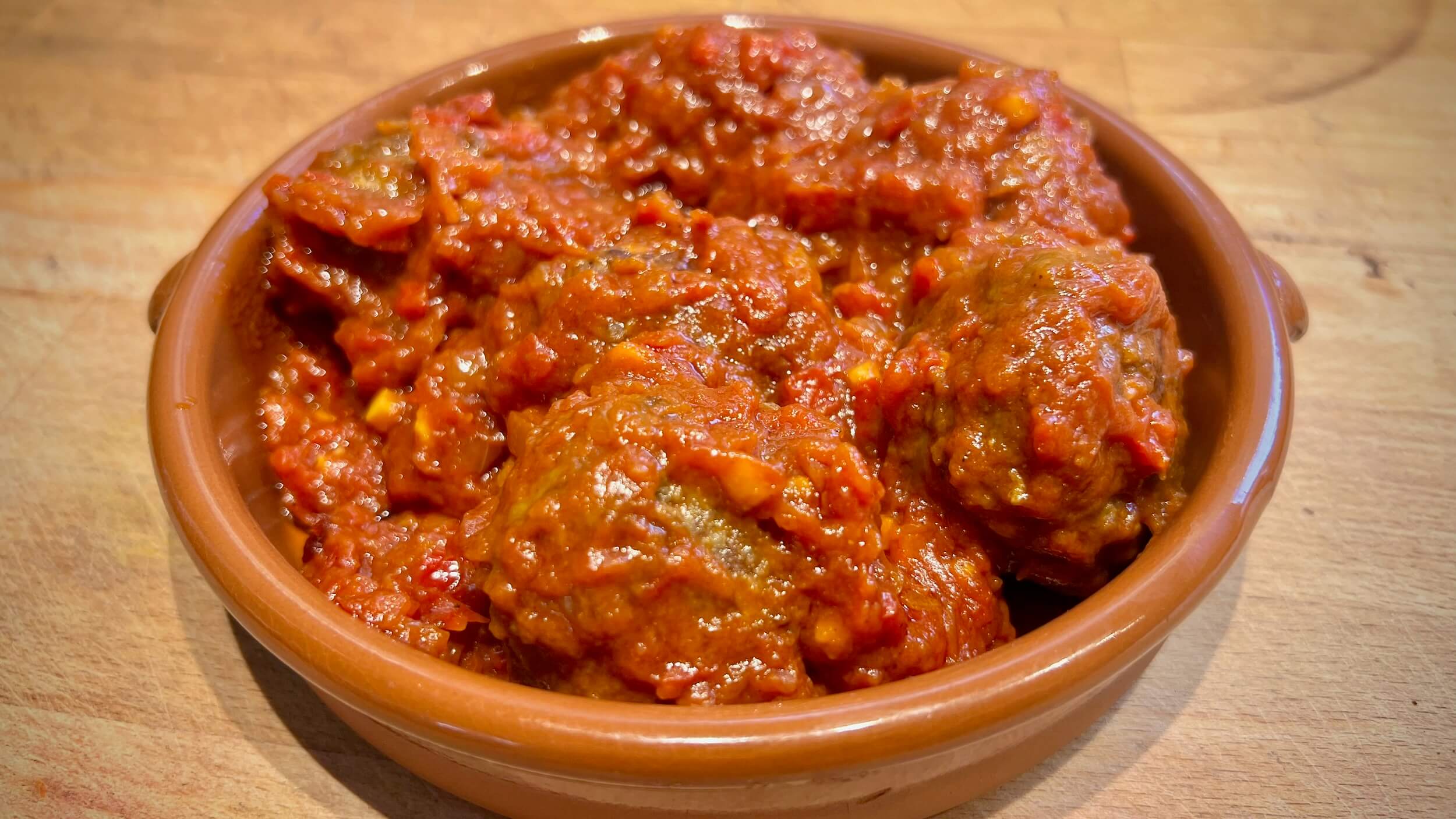 Wir legen die angebratenen Hackbällchen zurück in die Sauce und lassen alles etwa 20 Minuten bei schwacher Hitze ziehen. So nehmen die Albondigas die Aromen wunderbar auf und bleiben gleichzeitig saftig.